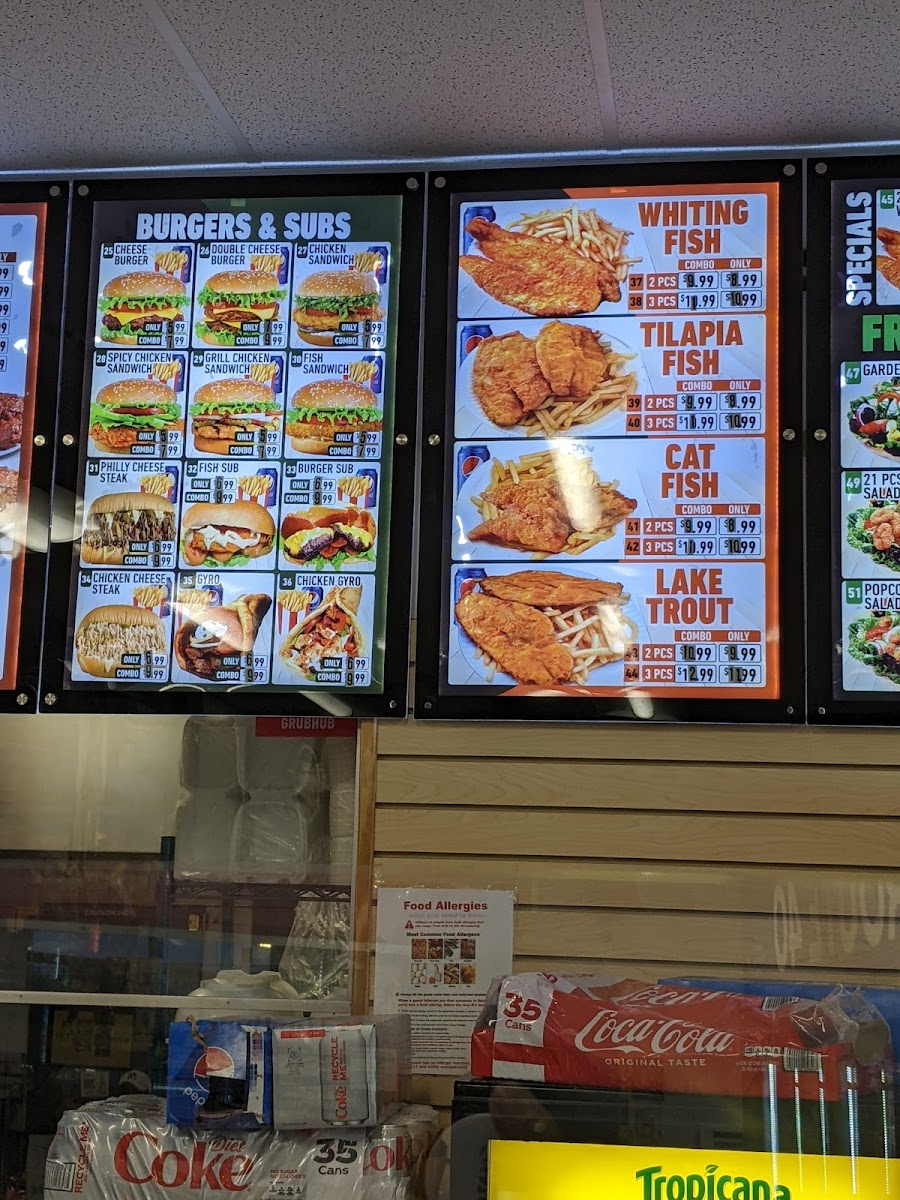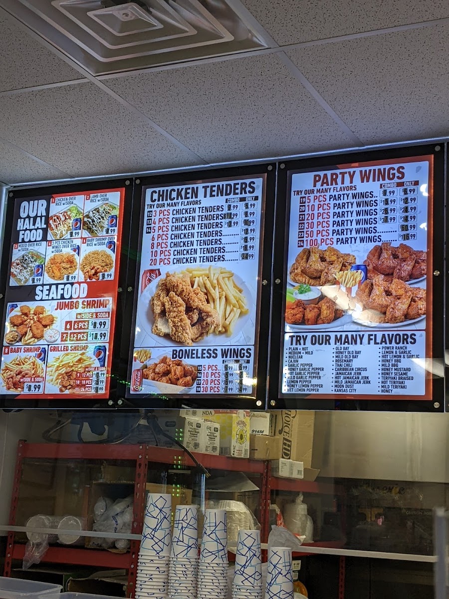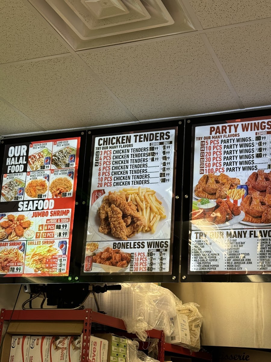 From a reviewer’s perspective, the menu at America’s Best Wings Halal Food offers a concise but satisfying selection, especially for seafood and quick comfort meals. The seafood section features options like Baby Shrimp, Grilled Shrimp, and Jumbo Shrimp, which are great choices for shrimp lovers looking for variety in portion size and preparation style. In the burgers and subs category, items such as the Fish Sub, Whiting Fish, Tilapia Fish, Cat Fish, and Lake Trout provide a strong range of fish options that cater well to those who prefer hearty, flavorful sandwiches and platters. The menu also includes other popular items like 6 Pcs Chicken Tenders and the filling Mixed Over Rice W/Soda, which is a convenient combo for a complete meal. Overall, the menu focuses on seafood and casual favorites, making it a solid spot for customers who enjoy fish-based dishes, chicken tenders, and rice platters at a casual halal restaurant.